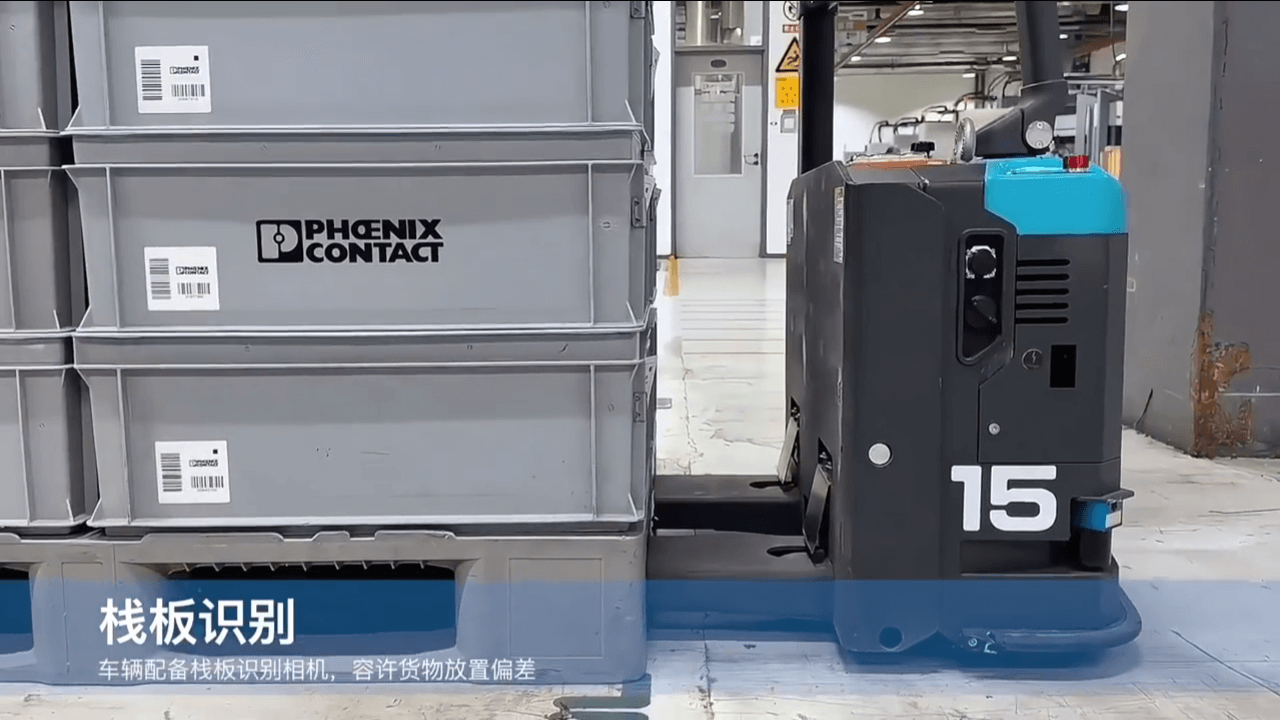 无人叉车配备栈板识别相机,允许货物放置偏差,保证作业的灵活性与稳定性。